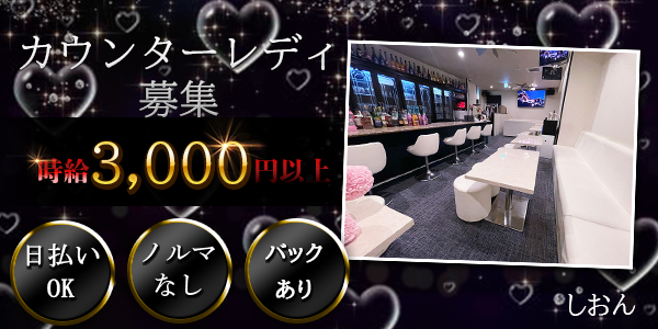 .゜。:+.゜。:+*. Girls Bar しおん スタッフ募集中 .゜。:+.゜。:+*. ◆お店について◆ しおんは、素人系の女の子がたくさん働いている お洒落な「コンカフェ×ガールズバー」です。 女の子同士の仲が良く、いじめや無駄な上下関係もないので みんな和気あいあいと働けますよ◎ 楽しく働くことをコンセプトにしていますので 一緒に楽しく働いてみませんか? ◆未経験でもしっかり稼げる◆ 時給は3,000円から! 各種バックや手当があるので 時給以上に稼げるのも当店の魅力の1つです。 また、あなたの頑張り次第で時給もアップします↑↑ 時給3,000円の女の子が、時給4,000円以上に なることも珍しくありません。 今だけ入店ボーナスもありますので この機会にぜひご応募ください♪ ◆体験入店も受付中◆ 当店は体験入店制度があります。 (面接後に体験入店を強要されることはありません) ご納得いただけましたら、本入店していただけます。 何度でも体験入店が可能です◎ |