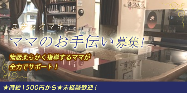 【注目ポイント】 スナックマキで働きませんか?30~40代が活躍中の、服装自由、終電帰りOKのお店です。時給1500円以上で経験・学歴不問、Wワークやフリーターも歓迎します。物腰柔らかく指導するママが全力でサポート! |