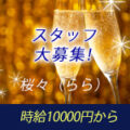 ①カウンターレディ 時給:5,000円~7,000円+高額バック有り ②ホールスタッフ 時給:1,300円~ |